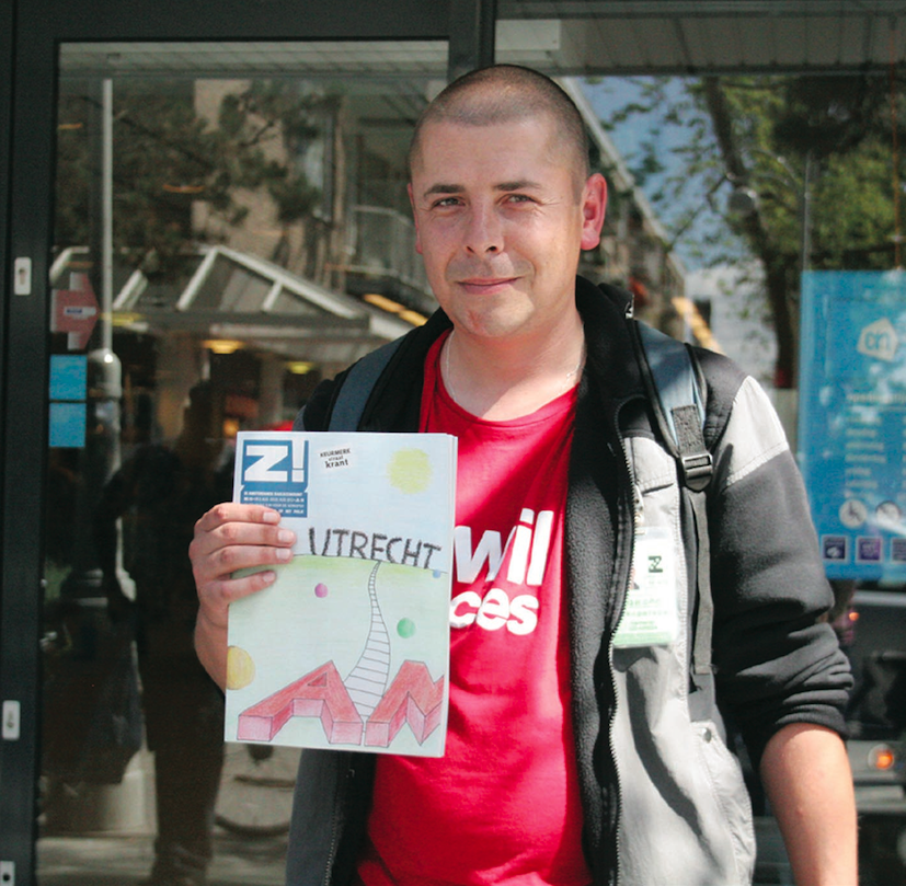 『Z!』は、この地で95年から販売されているストリートマガジン。同誌のコーディネーター、ユルン・デ・ローイさんは話す。「『Z!』の販売者のうち、オランダ国籍をもつ人が25%、残りの75%は移民です。その内訳は、約55%は欧州連合(EU)、25%が東欧諸国、15%が北アフリカ諸国(主にモロッコ、チュニジア、エジプト)、5%がその他の国々。移民の90%はいわゆる不法滞在者です」