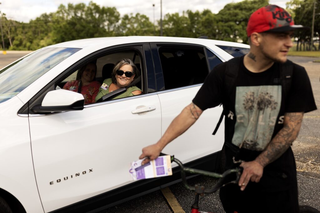 この地域では毎週木曜日、教会による食料配布が実施されていて、午後になると列ができる。非営利団体「PEIR」(People Engaged in Recovery=回復に取り組む人たち)によると、人口18万7000人のモービル市だけで3000人(約1.6%)がホームレス状態にあるという。「米国でホームレス状態にある人は、本人の自覚の有無はともかく、何らかの依存症を抱えていることが本当に多いのです。私自身がそうでしたから」と話すスタッフのカレン・エルモアは依存症を脱して8年になり、依存症からの回復がどれほど長く険しい道のりかを身をもって知っている。現在は依存症者を支援する側にまわり、多くの時間を現場でのアウトリーチ活動(予防的な支援や介入的な援助が必要な場合、支援者が被援助者のもとへ直接出向き支援すること) にあて、役所への連絡、生活支援、話を聞くというかたちでサポートしている。