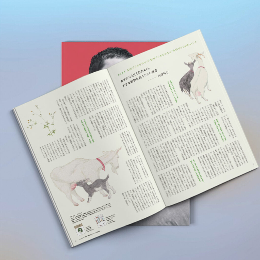 東京から小豆島へ移住してすぐにヤギを迎えることになった内澤旬子さん(文筆家・イラストレーター)によるイラストとエッセイ。ヤギのカヨとの出合いや創意工夫をしながらヤギたちの世話をする日々を描きます。さらに、ヤギを飼ったことで思わぬ大きな恩恵があったと語ります。