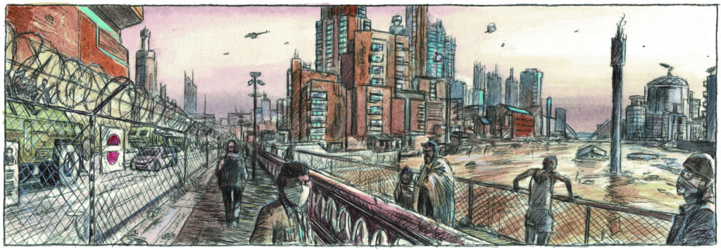 ここに住んで5年。公共施設を伴う総合共同住宅は、2030年代に気候変動で何百万人もの人々が家を失い始めた頃に建設が始まった。今となっては住民の孤立感やコミュニティの緊張も和らぎ、政府の家賃補助で低所得者も入居できる。